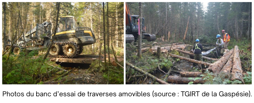 ⁹ Table de gestion intégrée des ressources et du territoire de la Gaspésie. (date inconnue). Utilisation de traverses amovibles lors de la récolte forestière. Comité sur la voirie forestière de la Table de gestion intégrée des ressources et du territoire (TGIRT) de la Gaspésie.