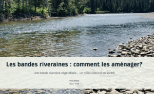 La bande riveraine est une zone de végétation naturelle bordant les plans d’eau, jouant un rôle essentiel dans la protection des milieux riverains. Elle limite l’érosion, filtre les polluants, réduit les risques d’inondation et offre des habitats à la faune. Sa largeur est réglementée selon le type de terrain (privé ou public). On peut la restaurer par renaturalisation ou revégétalisation avec des espèces indigènes adaptées.
